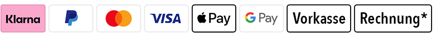 ✔ Vorkasse. Du erhältst sofort eine Rechnung per Mail mit den Zahlungsanweisungen. Die Bestellung wird erst verschickt, wenn deine Zahlung eingegangen ist.